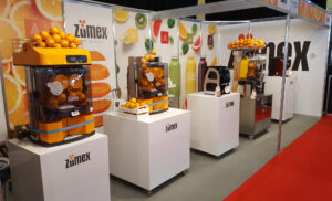 En nuestro concurrido stand los visitantes pudieron probar en vivo el exclusivo sistema de exprimido original mundialmente reconocido creado por Zumex Group SA.